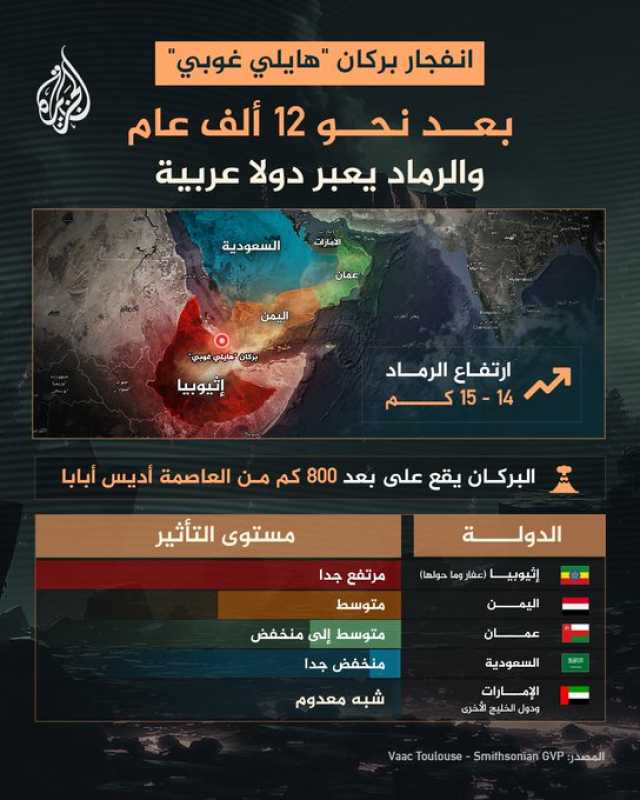 ثارت البراكين الإثيوبية لأول مرة يوم الأحد الماضي، مطلقة أعمدة رماد ارتفعت إلى 14 كيلومتراً، وانتقلت السحب الرمادية عبر اليمن وعُمان وباكستان لتغطي أجزاءً من شمال الهند يوم الثلاثاء، فيما تتحرك حالياً باتجاه الصين.