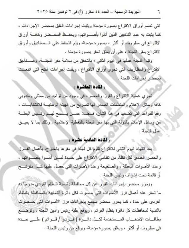 وتضمن أن يكون التصويت عن طريق الاقتراع السرى العام المباشر ، وعلى كل ناخب أن يباشر بنفسه هذا الحق ، ولا يقبل في إثبات شخصية الناخب سوى بطاقة الرقم القومي أو جواز السفر الساري المتضمن الرقم القومي .