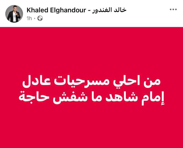 وكتب الغندور: “من أحلى مسرحيات عادل إمام شاهد ماشافش حاجة”.