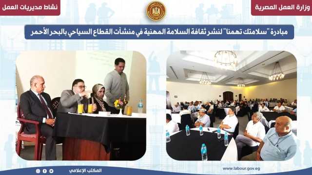 وقال أيمن شعبان مدير مديرية العمل بالبحر الأحمر، إن المبادرة تُترجم توجهات الدولة ووزارة العمل بقيادة الوزير محمد جبران وزير العمل، لتوفير بيئة عمل آمنة تحفظ صحة العاملين وتعزز من جودة العمل والإنتاج، مؤكدًا استمرار المديرية في تنظيم فعاليات توعوية وتدريبية تستهدف حماية العنصر البشري، ودعم ثقافة السلامة المهنية في مختلف القطاعات.