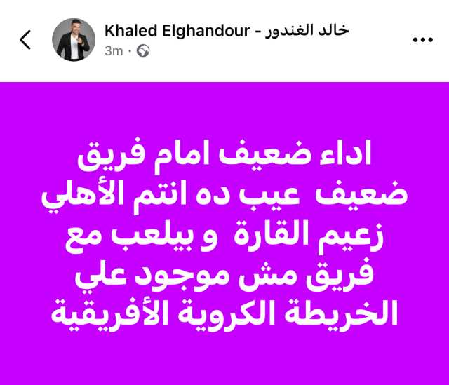 ضعيف عيب ده انتم الأهلي زعيم القارة وبيلعب مع فريق مش موجود علي الخريطة الكروية الأفريقية".