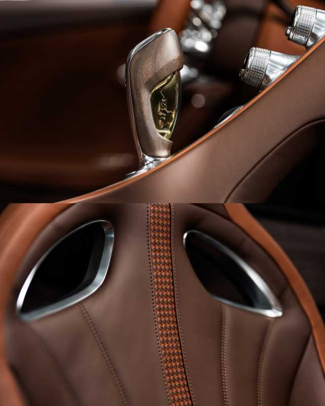 ويبرز في الداخل مقبض ناقل الحركة المصنوع من الخشب المصقول والمدعوم بطلاء ذهبي ولمسات معدنية فضية، في مزيج يجمع بين الفخامة التقليدية والحداثة الفنية.