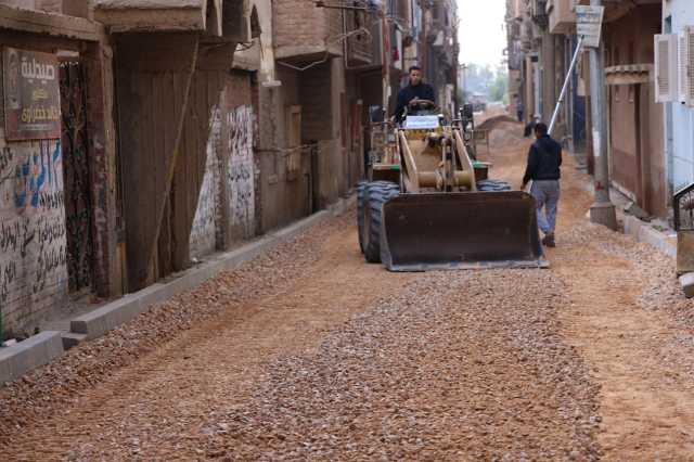 استمرار أعمال الرصف بشوارع مدينة طهطا
