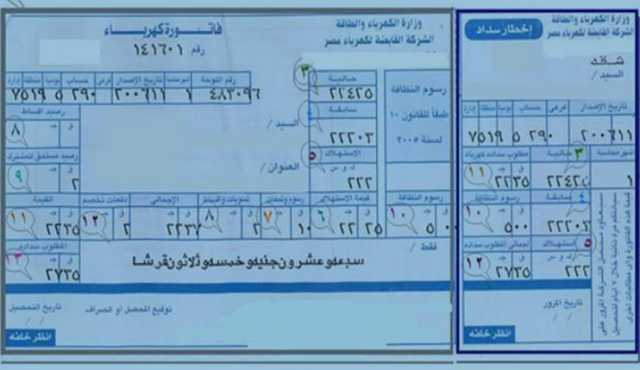 ـ وفي النهاية، تظهر قيمة فاتورة كهرباء.