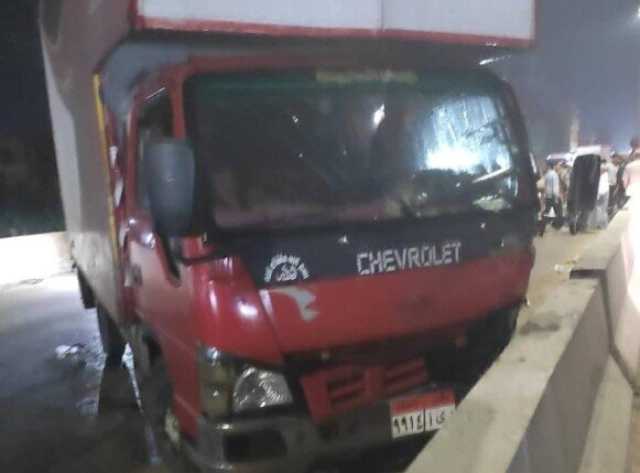 إصابة شخصين في تصادم سيارة نقل بأخرى محملة بمنتجات تموينية بالقليوبية (صور)