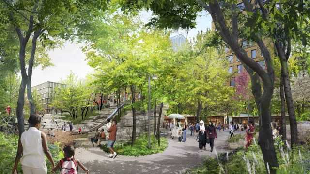 سيتحوّل المدرَّج الممتد لكيلومترين، الذي يُمثّل محور الموقع، إلى حديقة للمشاة تربط بين سبعة أحياء.