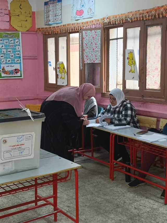 توافد عدد من الناخبين على لجان مدرسة محمد كريم، بالجيزة في إعادة إنتخابات النواب باليوم الثاني.