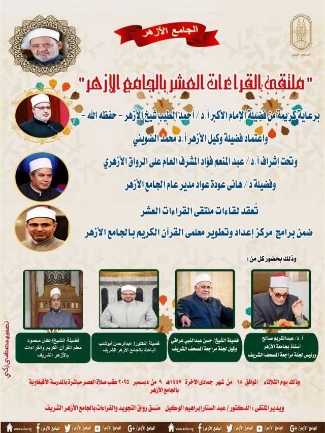 ودعا الدكتور عودة جميع المهتمين بعلوم القرآن الكريم، سواء كانوا طلابًا أو معلمين أو جمهورًا عامًا، للمشاركة في هذا الملتقى الفريد، حيث يُعتبر هذا الحدث فرصة قيِّمة للتعلم والتفاعل مع كبار المتخصصين في القراءات، مما يعزز من ترسيخ القيم القرآنية في المجتمع.