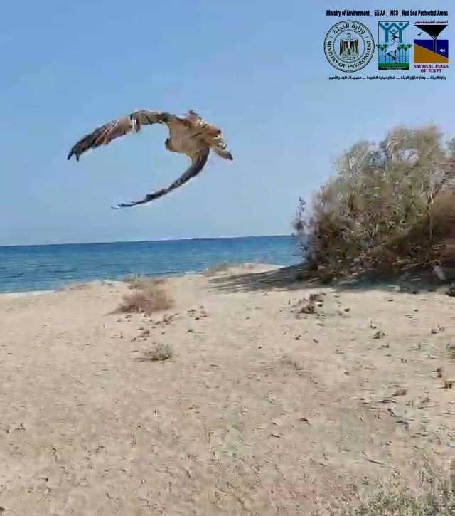 اطلاق طائر العقاب النسارى بعد علاجه بمحمية وادى الجمال