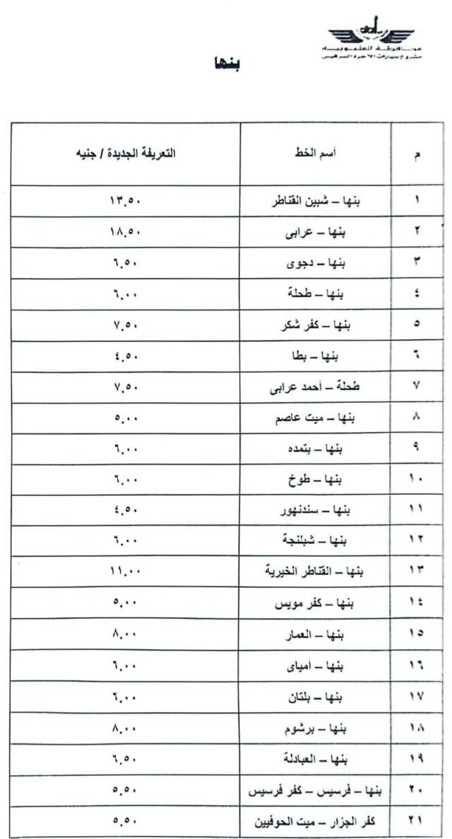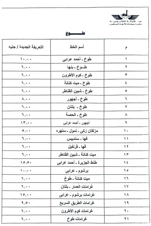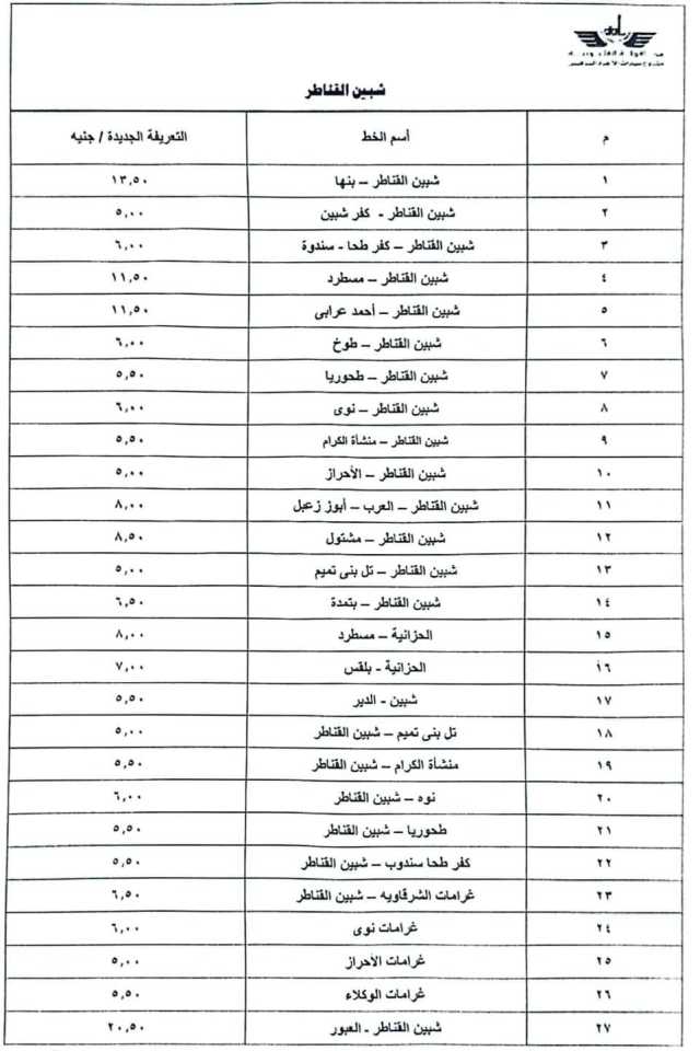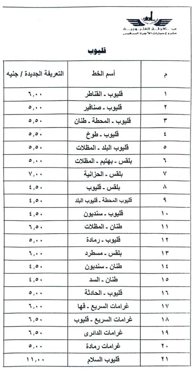 اعتمد المهندس أيمن عطية، محافظ القليوبية، صباح اليوم الجمعة، تعريفة الركوب الجديدة لسيارات الأجرة والسرفيس بخطوط النقل الداخلية والخارجية، وذلك عقب قرار لجنة التسعير التلقائي للمنتجات البترولية بتحريك أسعار الوقود اعتبارًا من اليوم الجمعة الموافق 17 أكتوبر 2025.