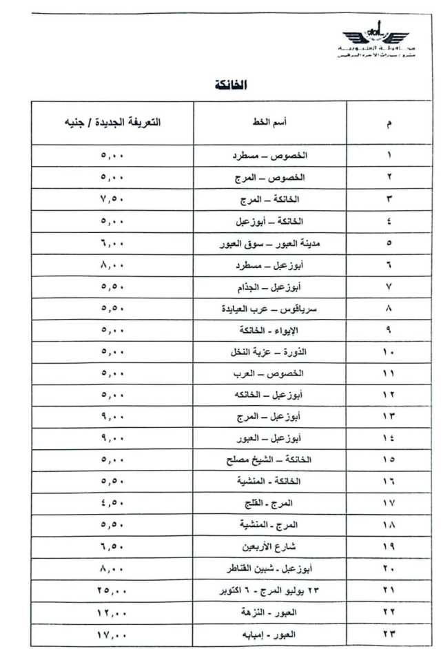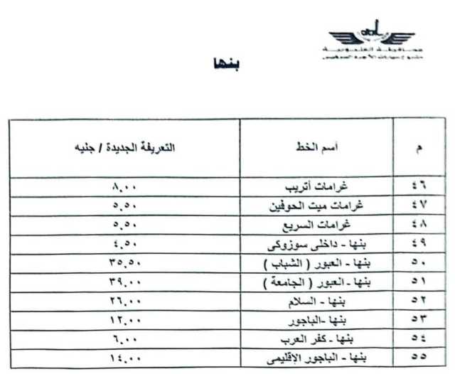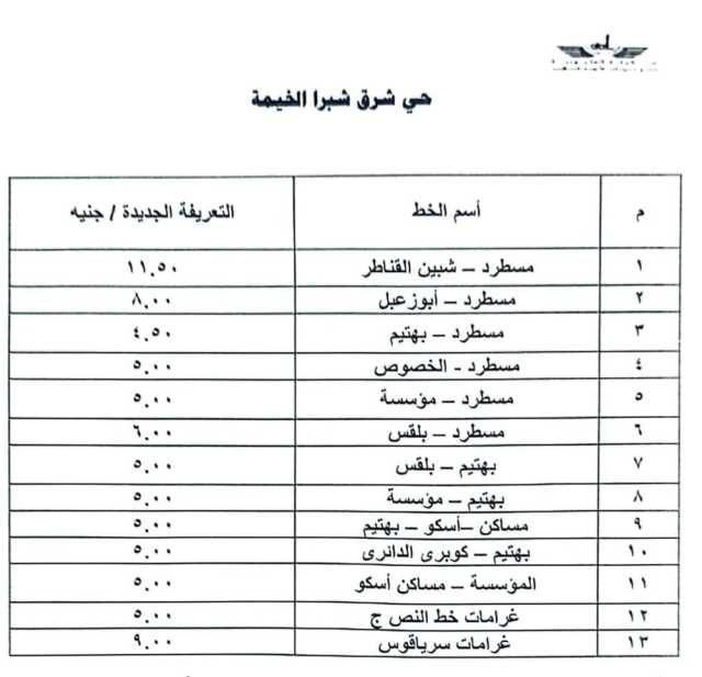 أتوبيس عادي ١٢ جنيها بدلا ١٠ جنيهات.