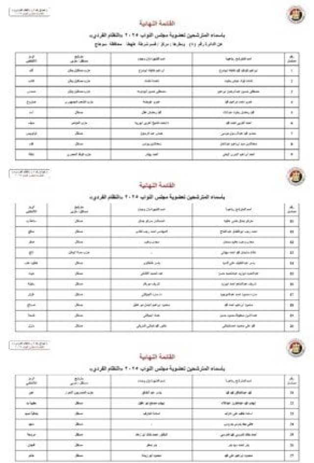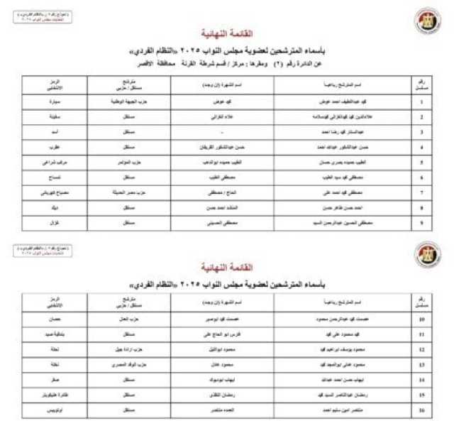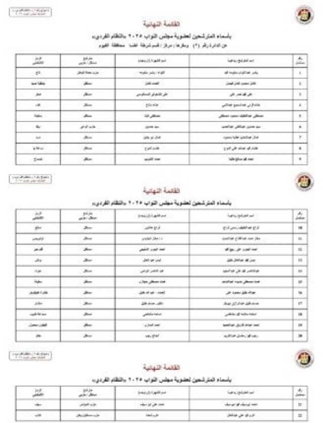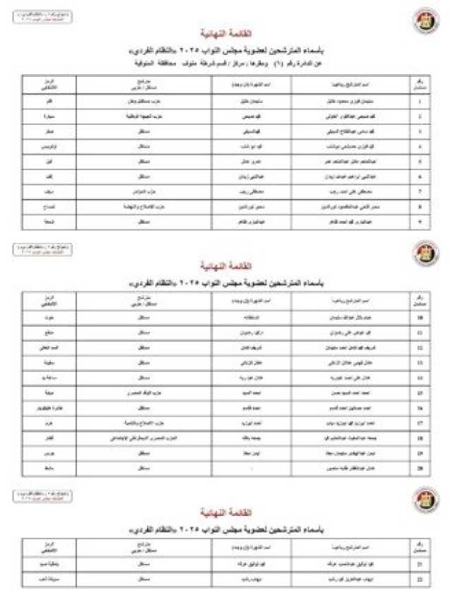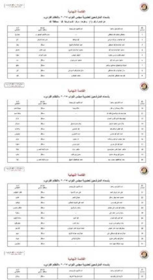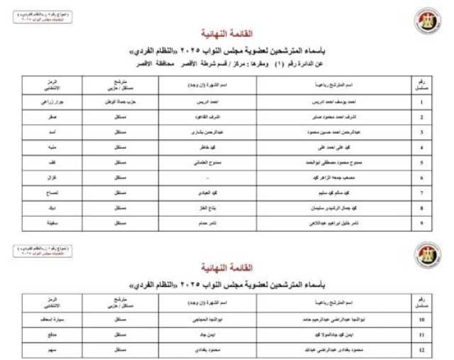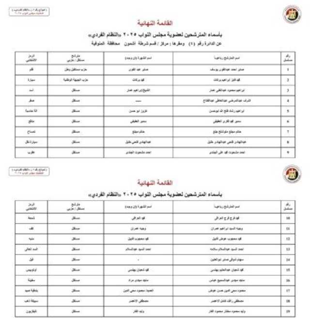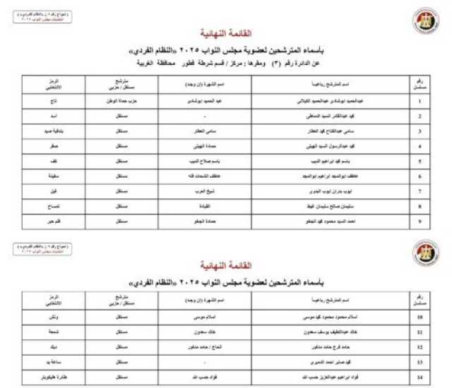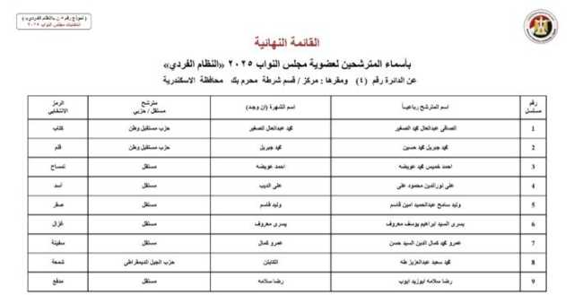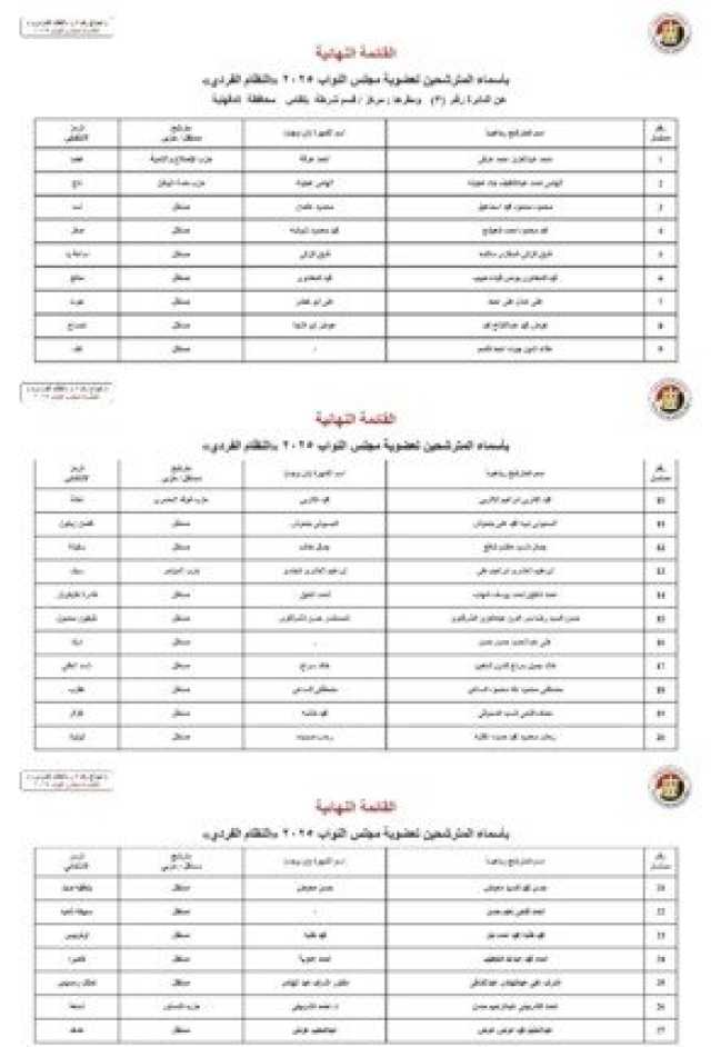 ننشر الأسماء النهائية لمرشحي انتخابات مجلس النواب 2025 عن النظام الفردي
