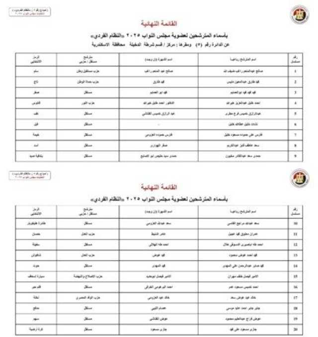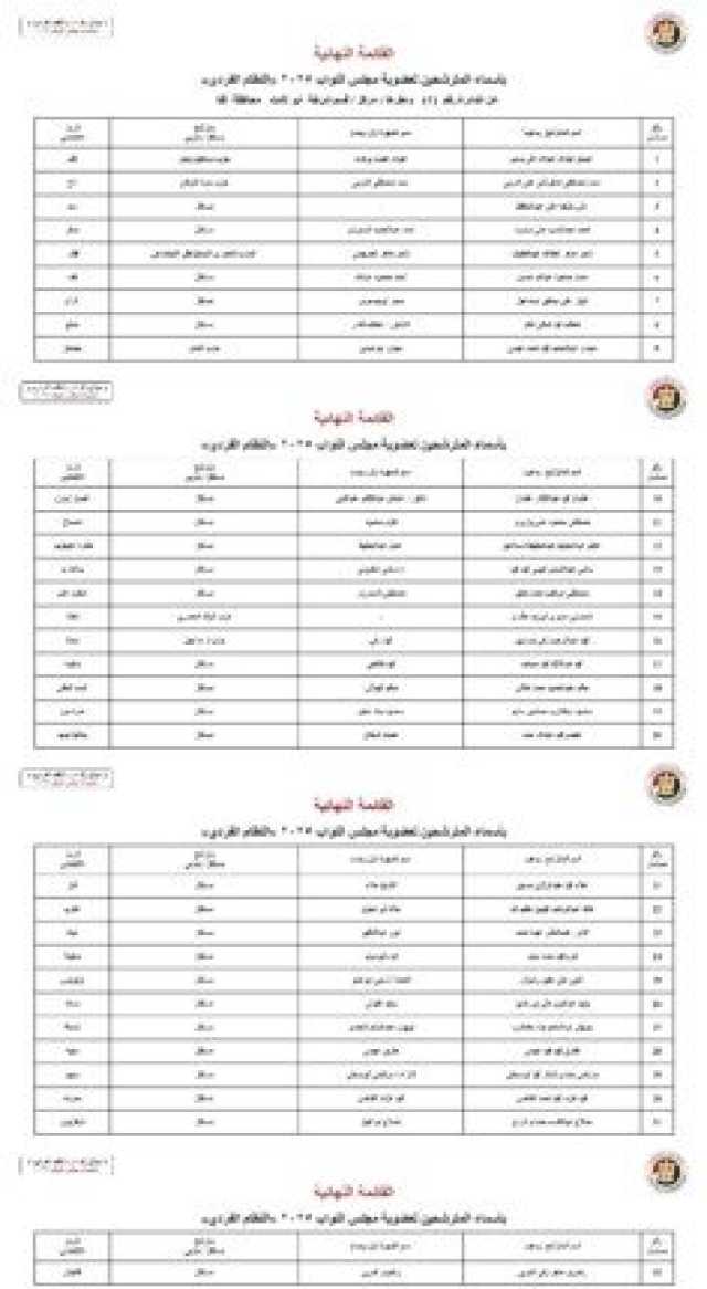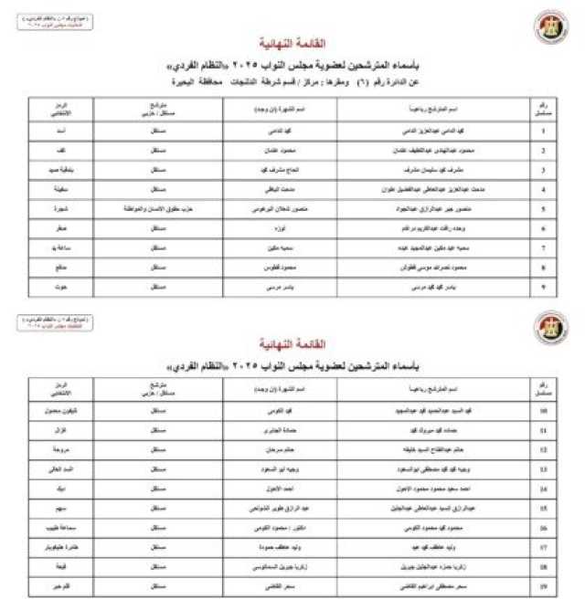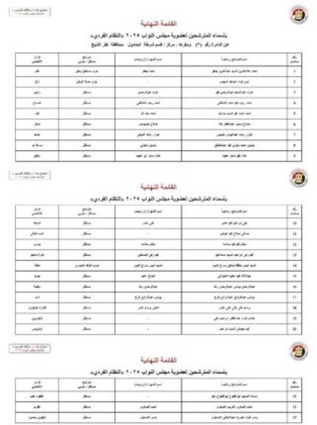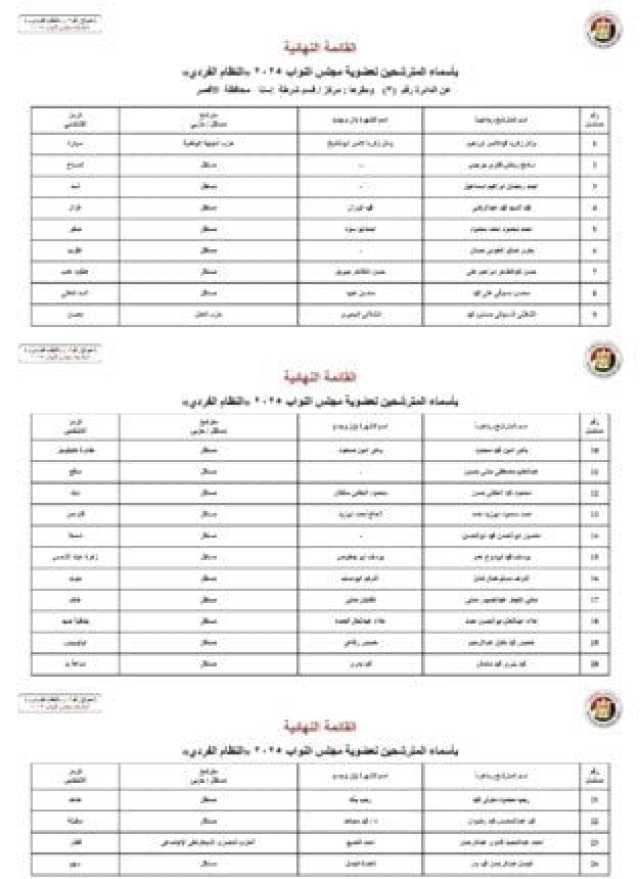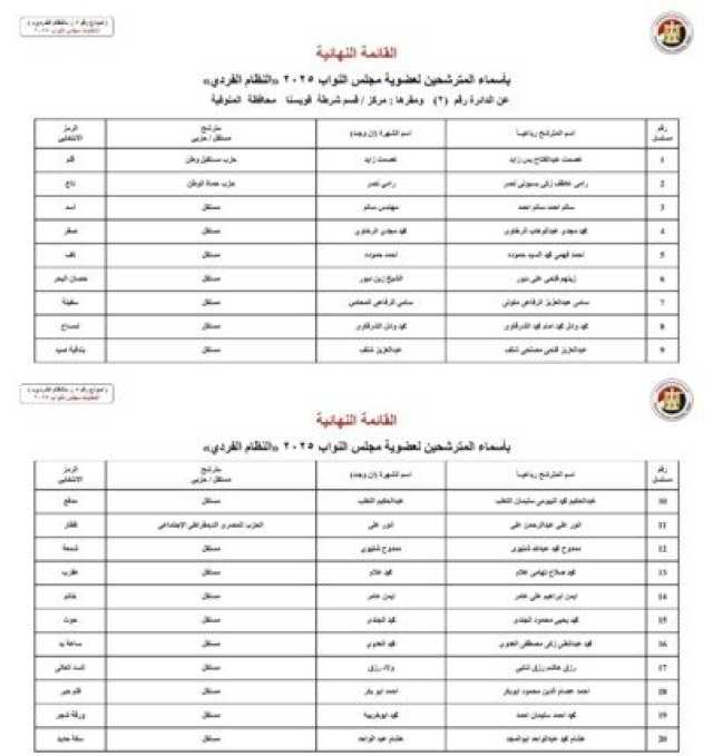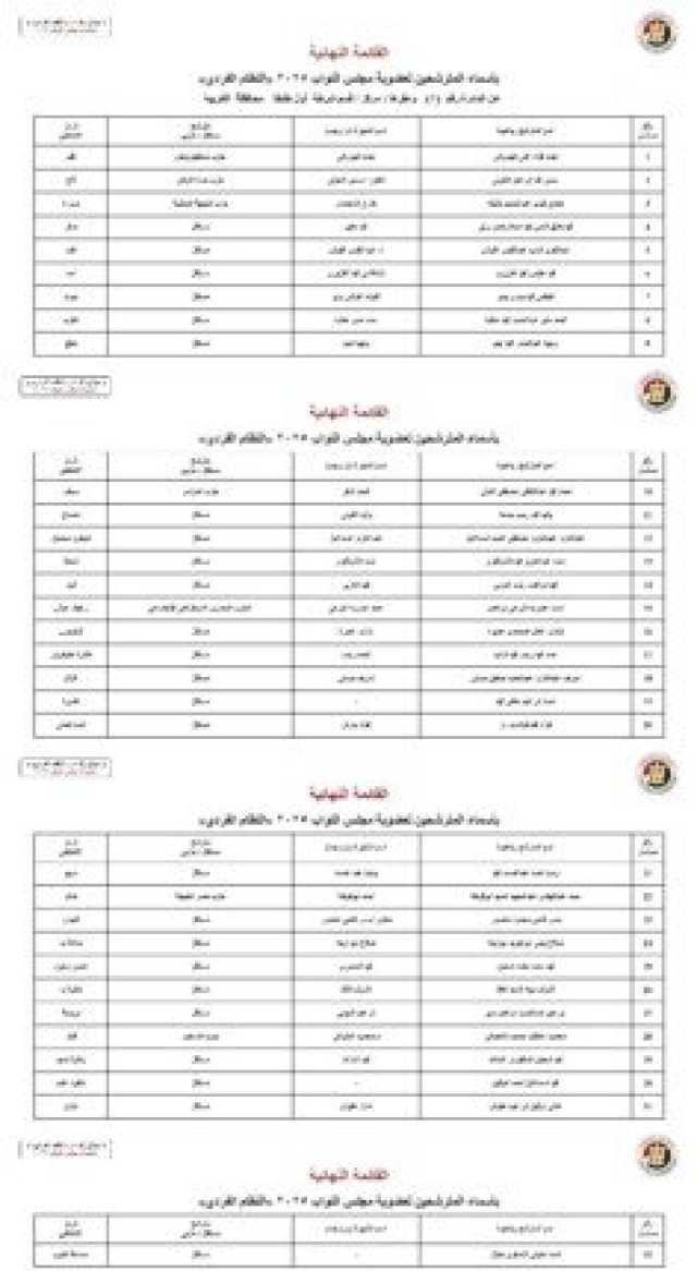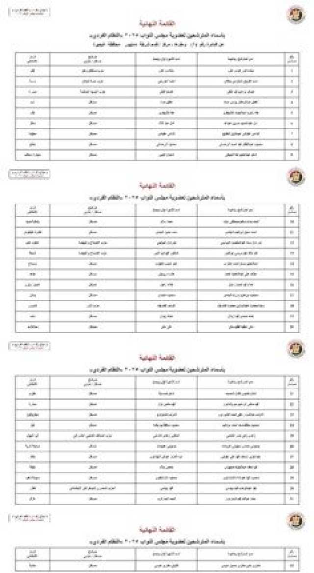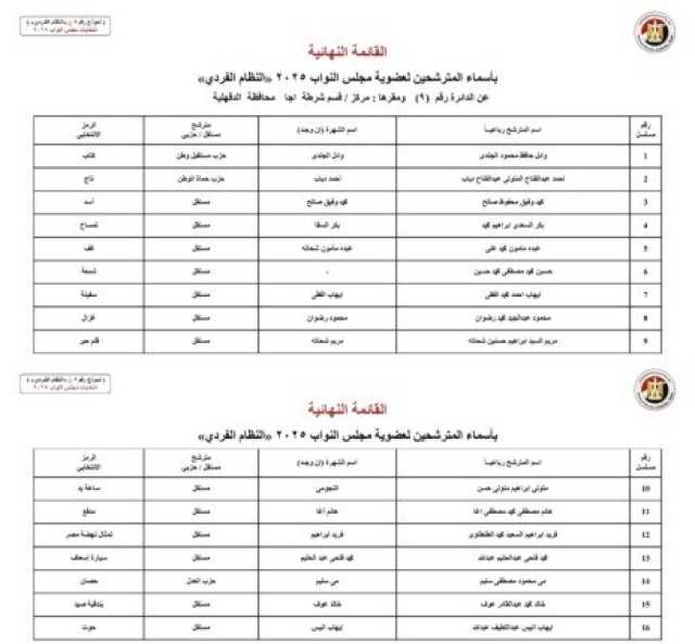 ننشر الأسماء النهائية لمرشحي انتخابات مجلس النواب 2025 عن النظام الفردي