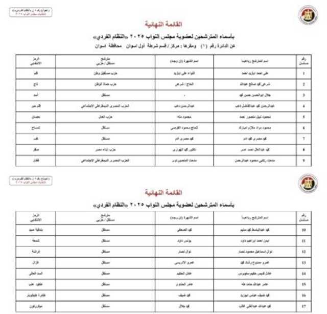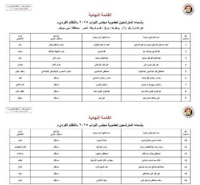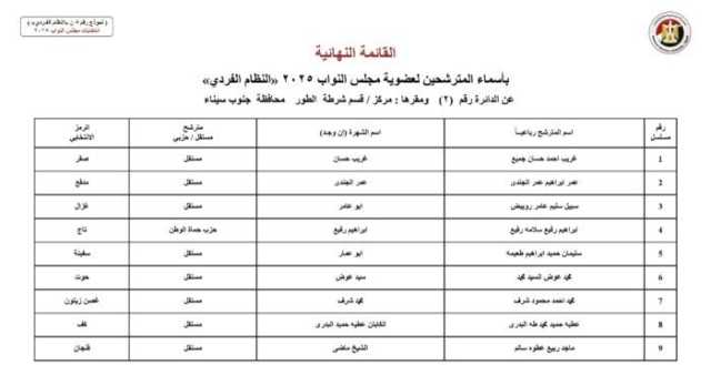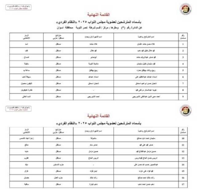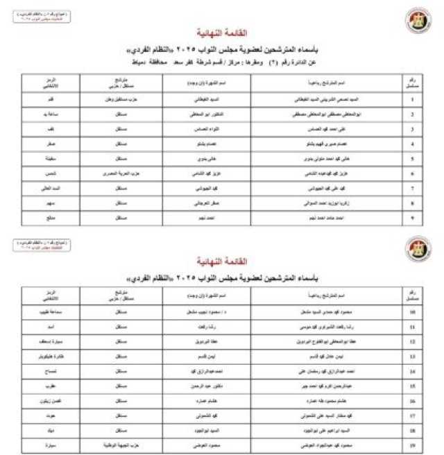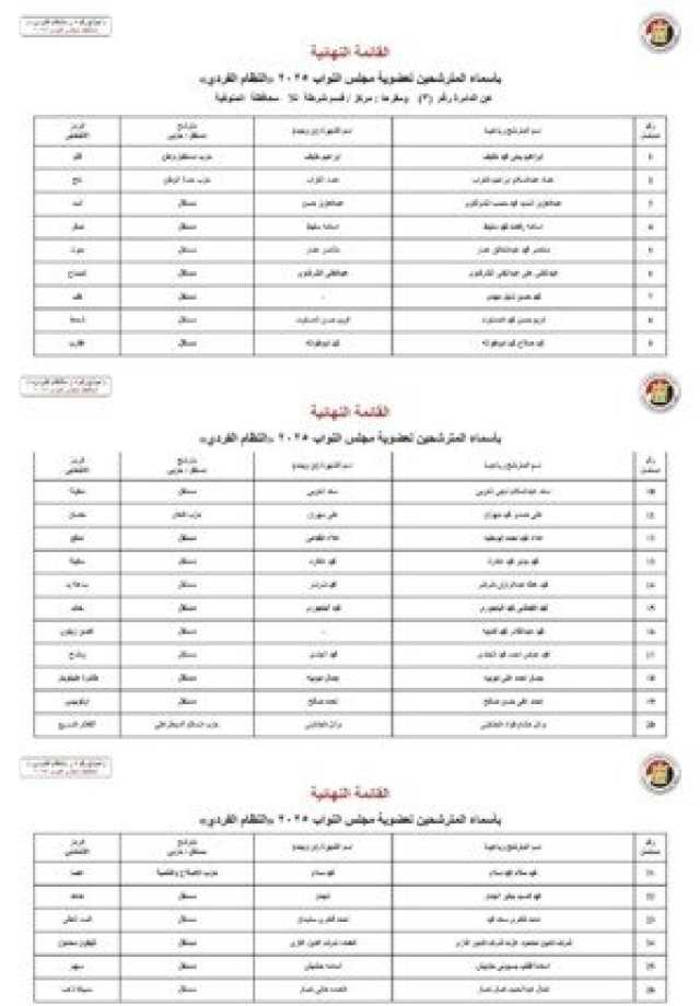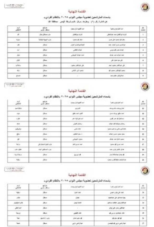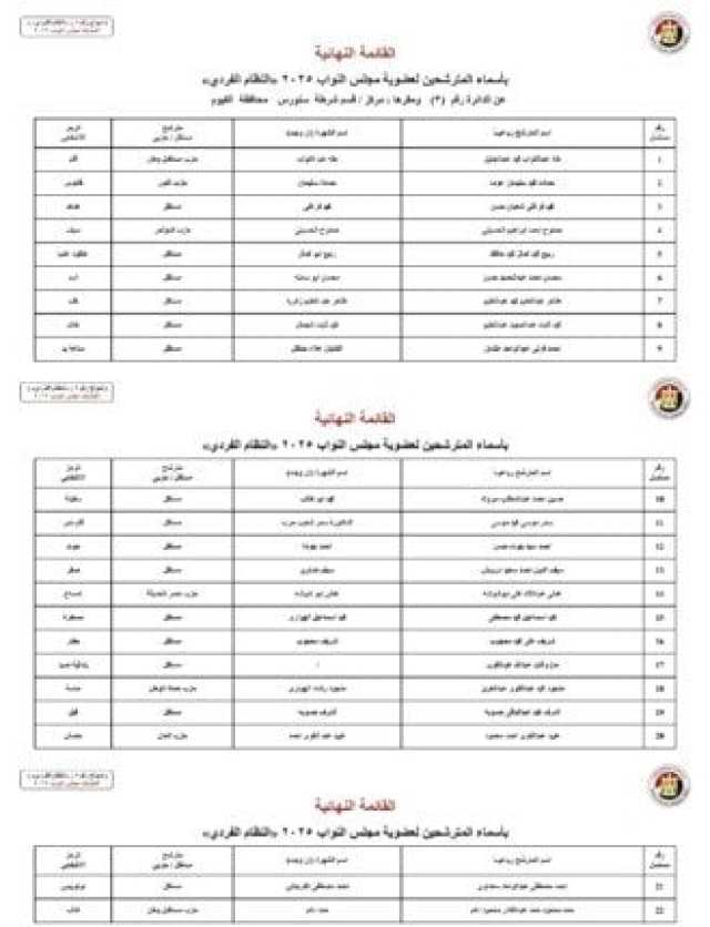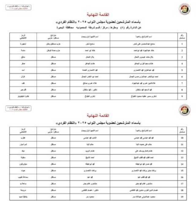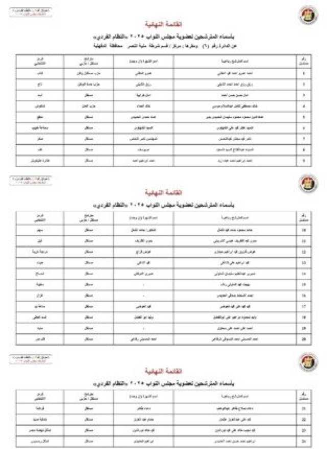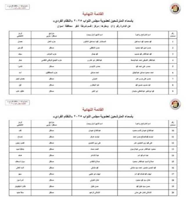 ننشر الأسماء النهائية لمرشحي انتخابات مجلس النواب 2025 عن النظام الفردي