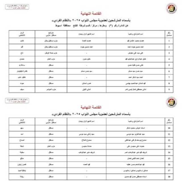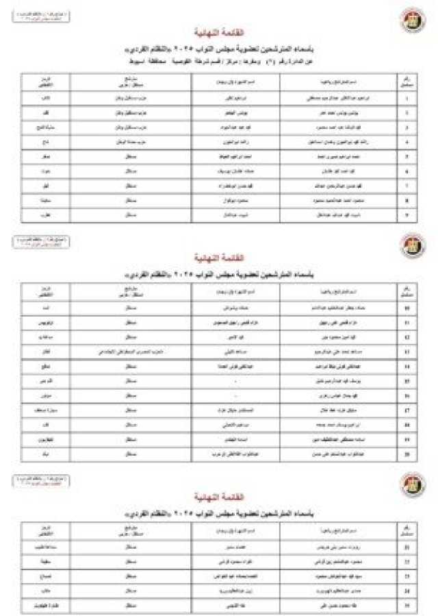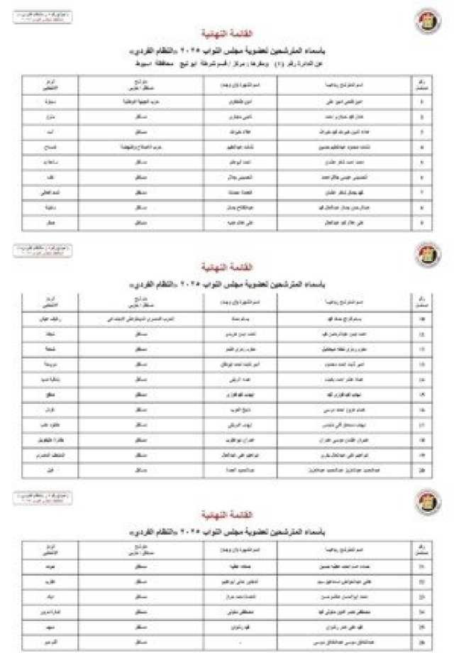 أسماء المرشحين في محافظة أسيوط: