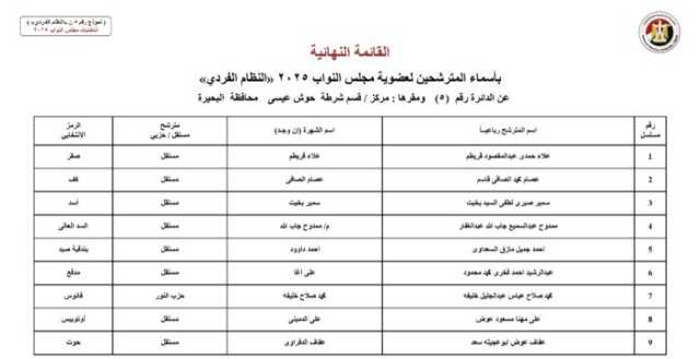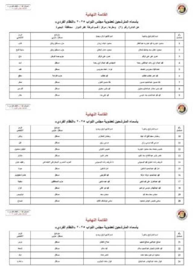أسماء المرشحين في محافظة محافظة البحيرة: