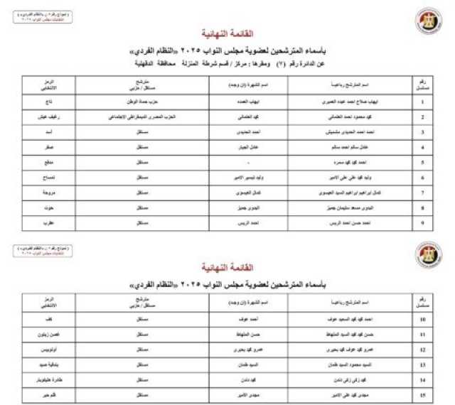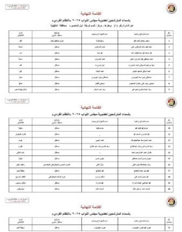 أسماء المرشحين في محافظة الدقهلية: