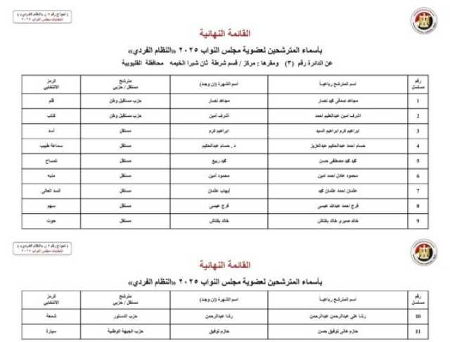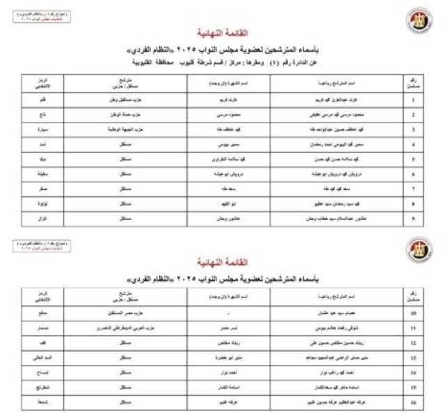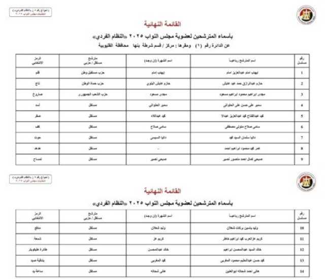أسماء المرشحين في محافظة القليوبية: