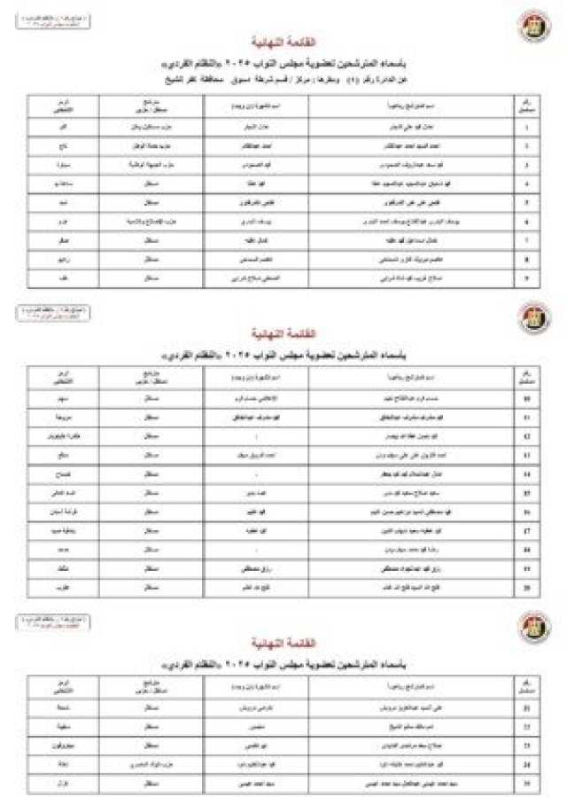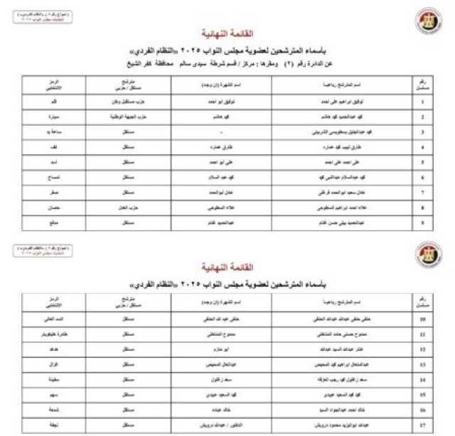 أسماء المرشحين في محافظة كفر الشيخ: