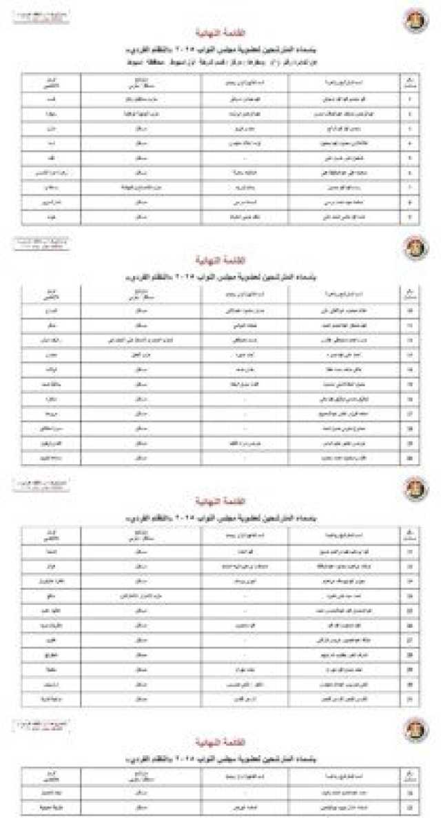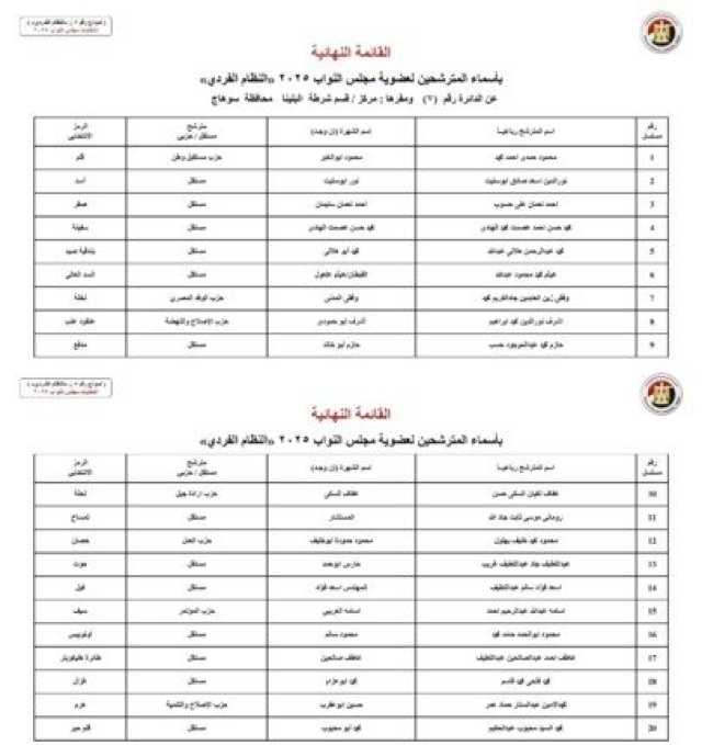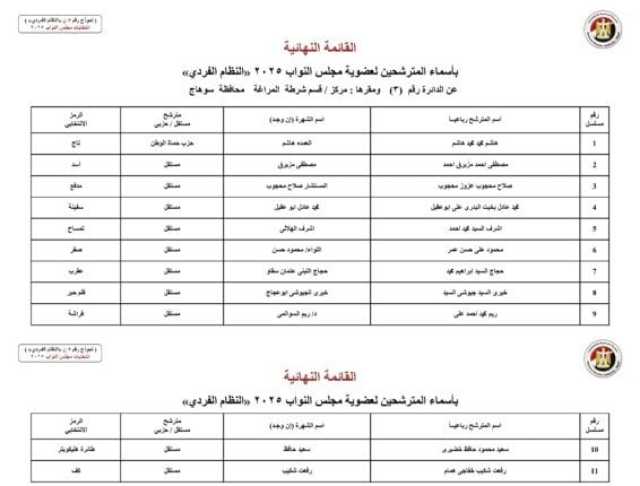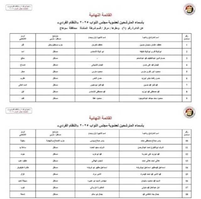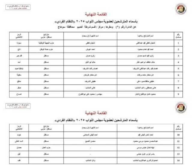 أسماء المرشحين في محافظة محافظة سوهاج: