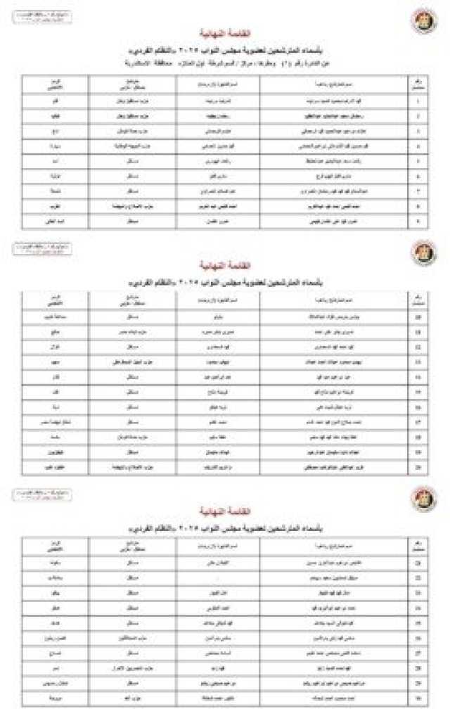 أسماء المرشحين في محافظة محافظة الإسكندرية: