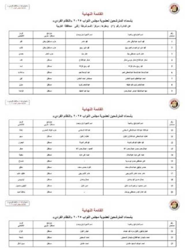 أسماء المرشحين في محافظة الغربية: