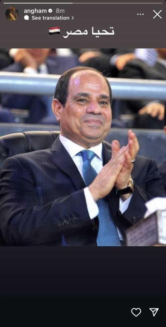 وكتبت الفنانة أنغام على صورة شاركتها للرئيس السيسي: “تحيا مصر”.