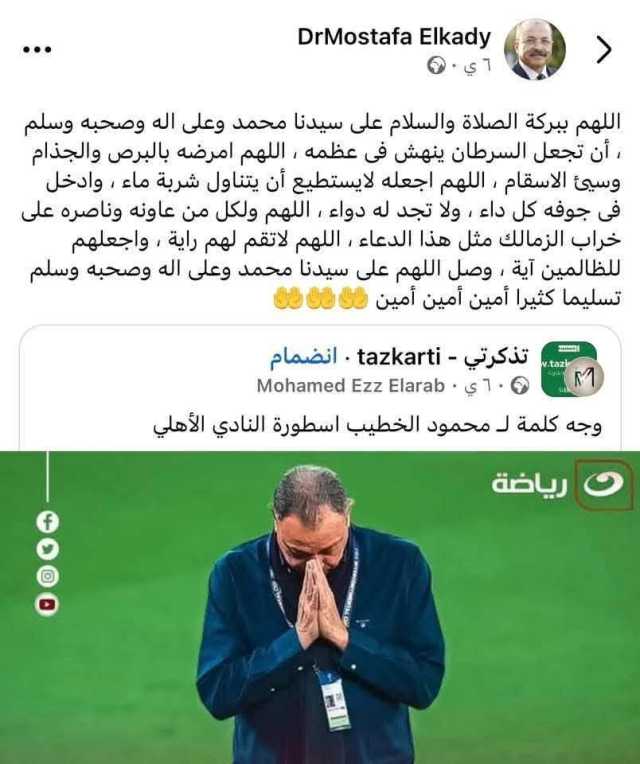 وتضمن الحكم وألزمته بالمصاريف وأتعاب المحاماة فى القضية رقم 728 لسنة 2023 جنح اقتصادية القاهرة المرفوعة من المحامي محمد عثمان لصالح الكابتن محمود الخطيب رئيس مجلس إدارة النادى الأهلى، يتهم فيها المذكور بالسب والشتم وإساءة استخدام وسائل التواصل والإزعاج.