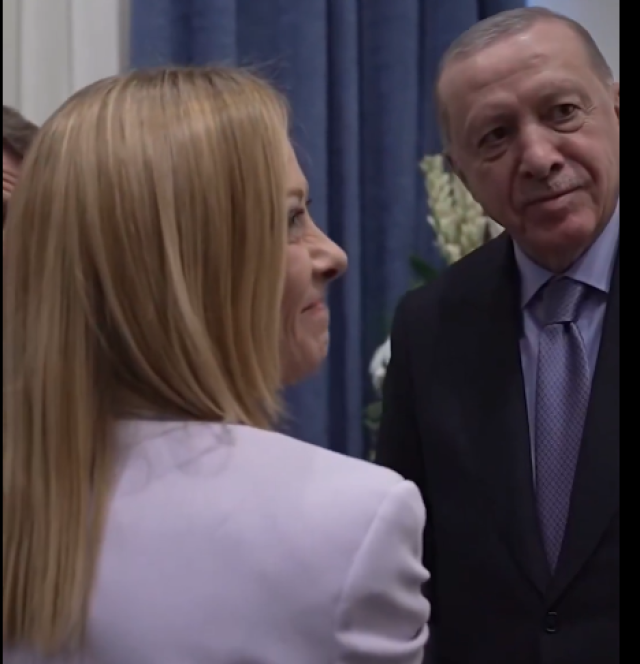 وفي نفس السياق، صافح الرئيس التركي رجب طيب أردوغان، ميلوني قائلا : "تبدين رائعة".