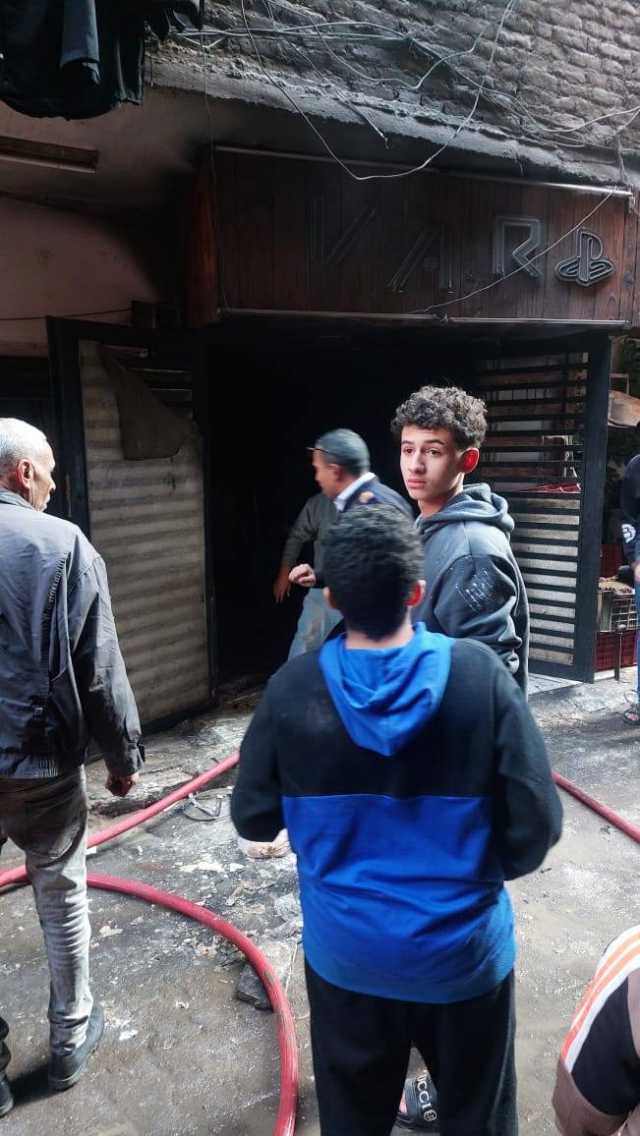 أمن الجيزة يجري معاينة لكشف سبب اشتعال حريق بمخزن تابع لمطعم فى إمبابة.. صور