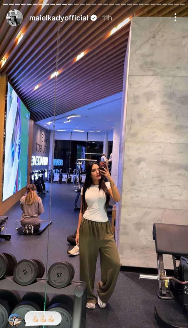 وخطفت مي القاضي ، أنظار جمهورها بإطلالة جذابة لافتة من الجيم بملابس رياضية، كشفت عن جمالها ورشاقتها.