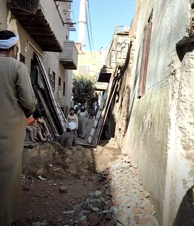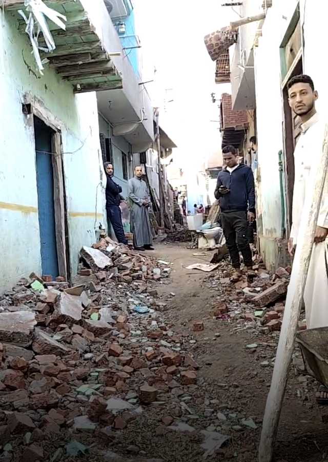 جاء ذلك بسبب تسريب مياه بسبب انكسار ماسورة مياه اسفل المنازل مما أدي الي انهيار جزئي للمنازل.