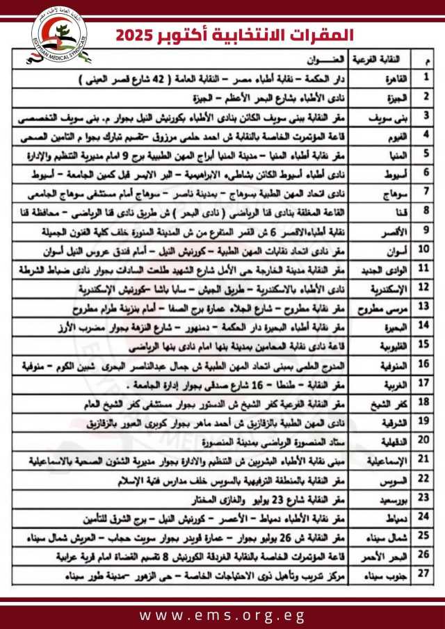 كما أعلنت اللجنة المشرفة، عن المقار الانتخابية بكل محافظة من المحافظات الـ 27 تسهيلا على الناخبين، كما شرحت طرق وكيفية التصويت في الورقة الانتخابية.