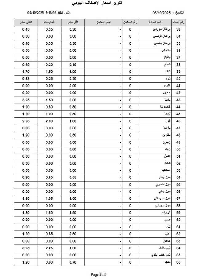 وفيما يلي قائمة محدثة بالأسعار بحسب السوق المركزي