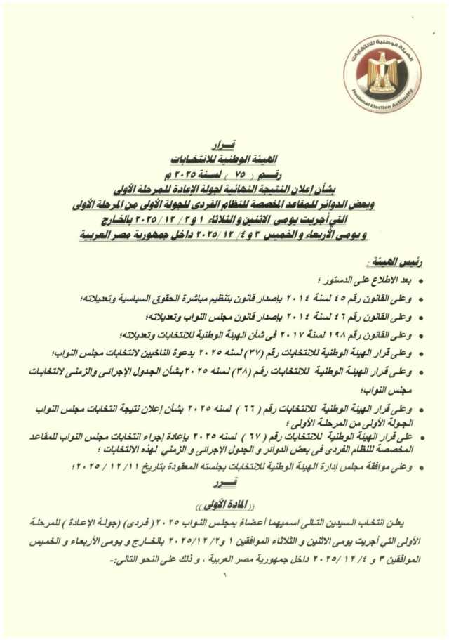 بالأسماء.. الـ19 دائرة المُلغاة بالمرحلة الأولى بانتخابات مجلس النواب تدخل إعادة للمرة الثانية.. مستند