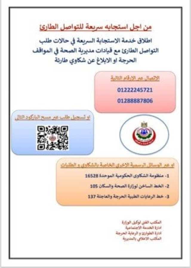 للتواصل في الحالات الطارئة.. إطلاق خدمة الاستجابة السريعة بصحة البحيرة