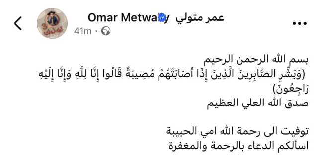 عمر مصطفى متولي ينعى والدته
