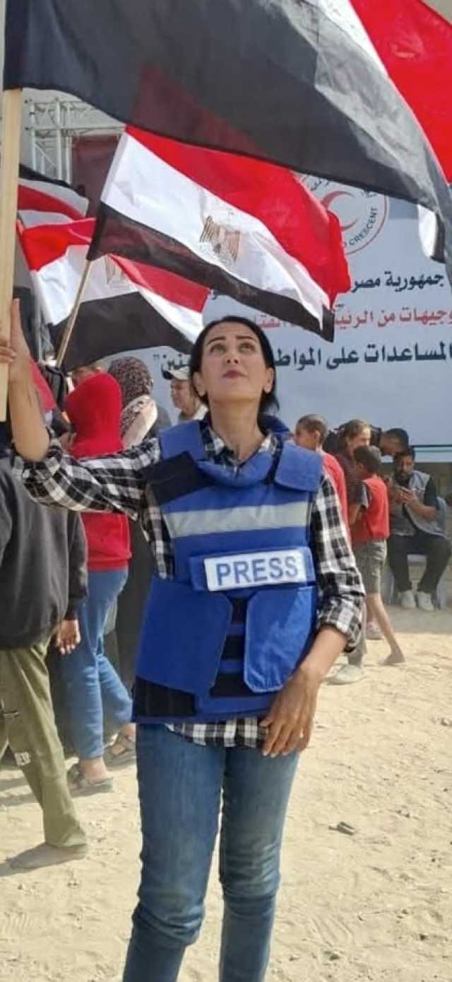 صحفية فلسطينية ترفع علم مصر بعد نجاح مفاوضات شرم الشيخ