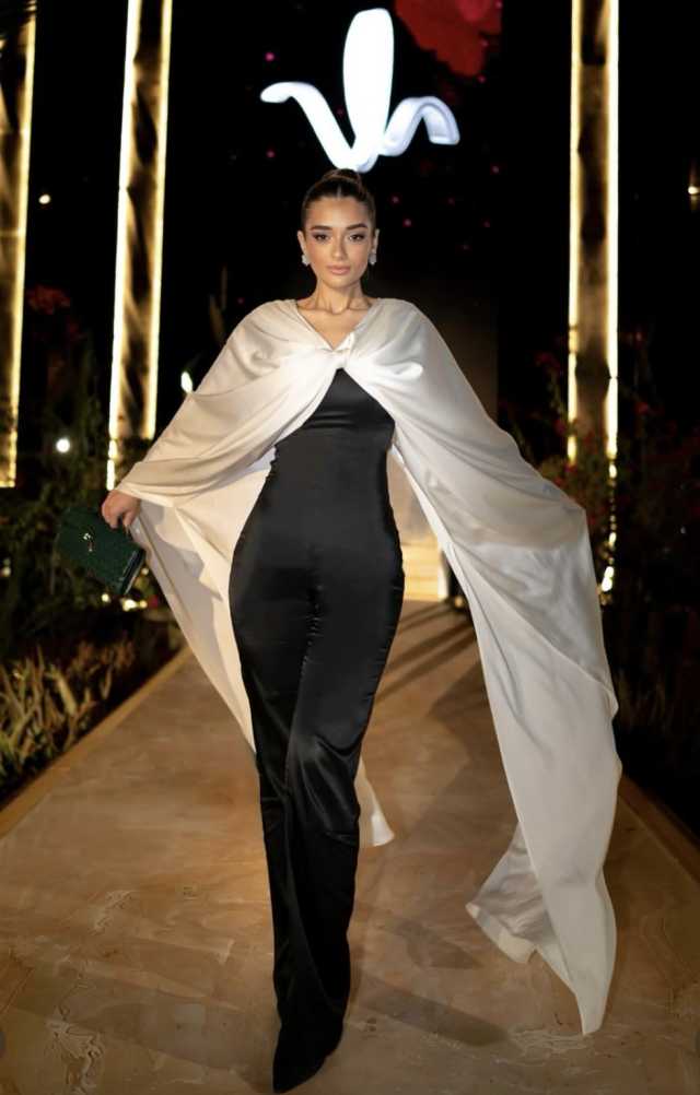 لفتت الفنانة ملك زاهر الأنظار بإطلالة أنيقة وجذابة خلال إحدى السهرات على شاطئ البحر الميت، حيث تألقت بـ سوت أسود ضيق بتصميم بسيط أبرز رشاقتها وأنوثتها، نسّقته مع كاب حريري طويل باللون الأبيض الناصع أضفى لمسة فخمة وملوكية على الإطلالة.