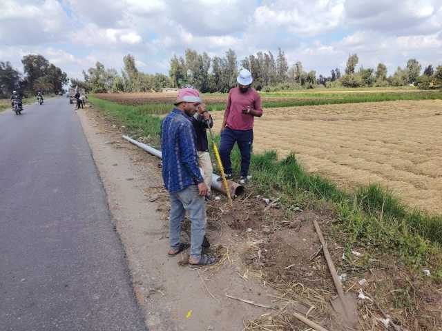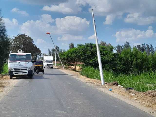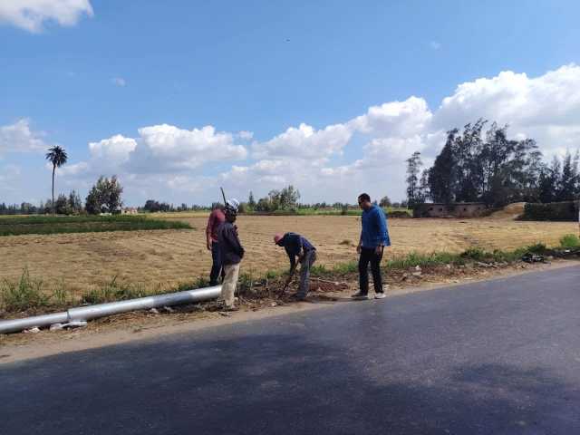 لرفع مستوى الأمان.. زرع 17 عمود إنارة بطريق حاذق بكفر الشيخ| صور