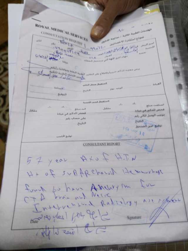 وأوضح ذوو المريض أن حالته الصحية حرجة للغاية، حيث كان يتلقى العلاج في مستشفى الأمير حمزة قبل أن يُنقل إلى المدينة الطبية، بعد أن أكد الأطباء هناك أن حالته تتطلب عملية تداخل بالأشعة في الدماغ، وهي عملية دقيقة لا يمكن إجراؤها جراحياً.