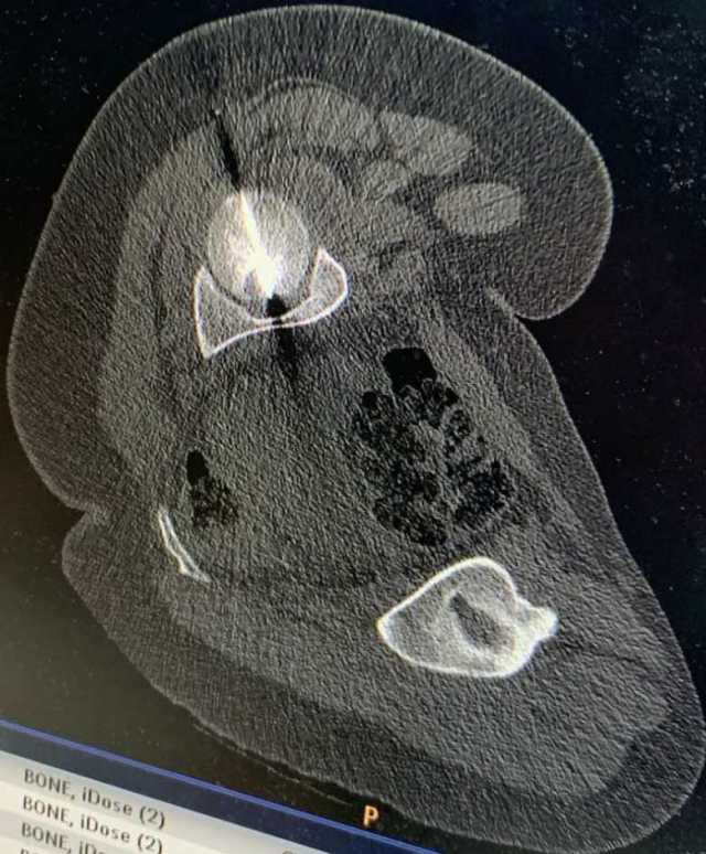وبيّن البطوش، أنّ الفريق الطبي نجح في الوصول إلى مركز الورم بدقة عالية باستخدام تقنيّة التصوير الطبقيّ المحوريّ (CT Scan)، تلا ذلك إجراء الكي بالتقنيّة الحراريّة باستخدام المايكروويف (Microwave Ablation)، وهي من أحدث التقنيّات العالميّة في علاج أورام العظام دون الحاجة إلى التدخّل الجراحيّ المفتوح.