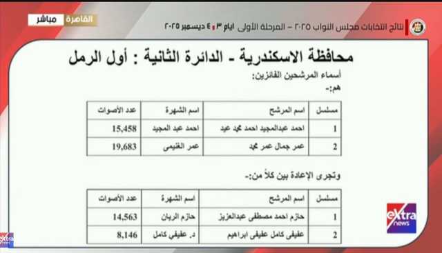 الوطنية للانتخابات تعلن نتائج الدوائر المُلغاة في مجلس النواب بالإسكندرية