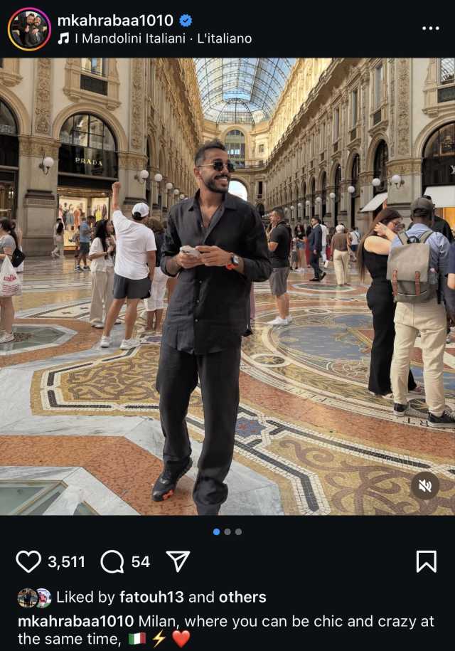 نشر اللاعب المصري محمود عبد المنعم كهربا صورة جديدة عبر حسابه الرسمي على موقع إنستجرام، أثناء تواجده في مدينة ميلانو الإيطالية، حيث ظهر بإطلالة كاجوال أنيقة داخل أحد أشهر معالم المدينة وهو غاليريا فيتوريو إيمانويل الثاني.