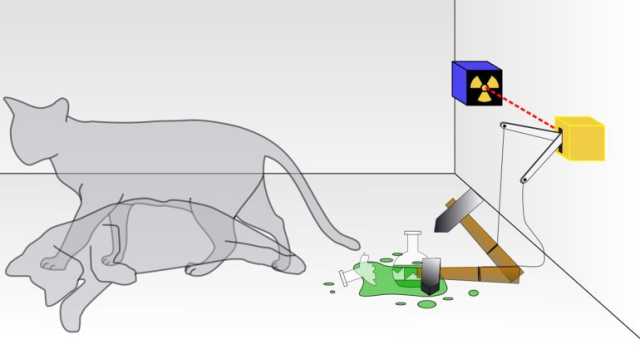 في حياتنا العادية نستخدم أدوات لغوية تفصل بين حدثين يمكن فقط أن يحدث واحد منهما مثل "أو"، فالقطة بعد ساعة ستكون حية "أو" ميتة، هذا بديهي لك، لكن من وجهة نظر ميكانيكا الكم فإن القطة توجد بعد مرور ساعة في حالة مركّبة من الحياة والموت، أي إنها تكون حية وميتة في الوقت نفسه.