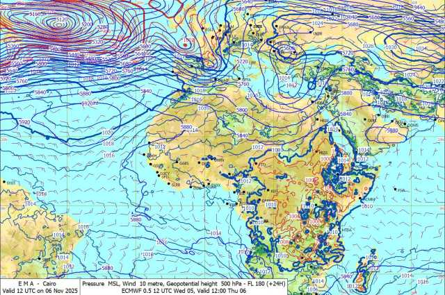 وأشارت هيئة الأرصاد في بيانها، إلى أن الطقس غدا، يشهد أيضا في الصباح الباكر نشاط شبورة مائية كثيفة تتكوّن في الصباح الباكر من الساعة الرابعة حتى التاسعة صباحًا على بعض الطرق الزراعية والسريعة المؤدية من وإلى مناطق السواحل الشمالية، والوجه البحري، والقاهرة الكبرى، ومدن القناة، ووسط سيناء، وشمال الصعيد، وقد تكون كثيفة أحيانًا على بعض الطرق مما يستدعي الحذر أثناء القيادة.