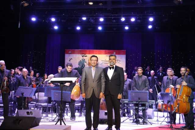حضر الاحتفالية الفنان أحمد الشافعي، رئيس الإدارة المركزية للشئون الفنية، وإيمان حمدي مدير عام المهرجانات، وسمر الوزير مدير عام المسرح، وأحيته الفرقة المصرية للموسيقى والغناء بقيادة المايسترو الدكتور مازن دراز، التي قدمت باقة من أجمل الأغاني الوطنية الخالدة التي ارتبطت بذاكرة النصر وروح الانتماء، حيث تفاعل الجمهور مع كل لحن وكلمة في أجواء احتفالية مفعمة بالمشاعر الوطنية.