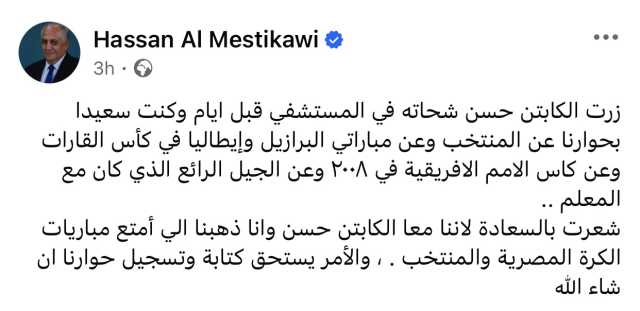 المستكاوي يزور حسن شحاتة في المستشفى.. ويكشف عن حوار كروي مميز بينهما