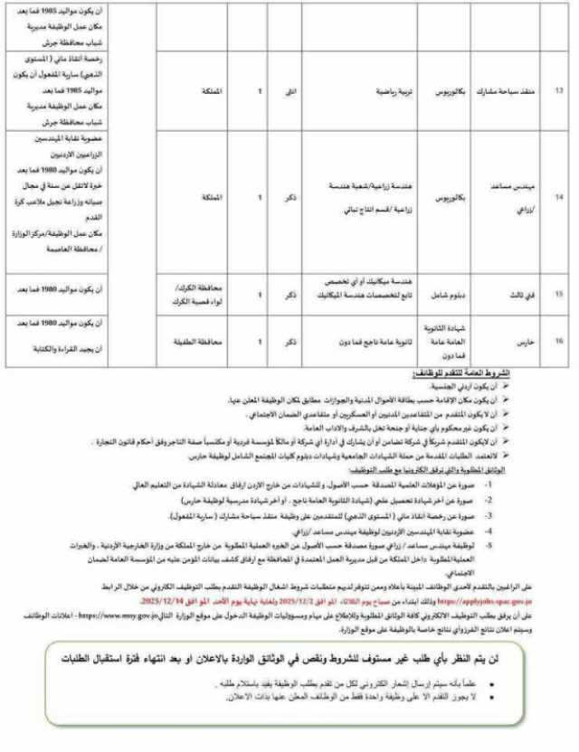 صراحة نيوز-أعلنت وزارة الشباب عن فتح باب التقديم لعدد من الوظائف الشاغرة بعقود سنوية، وذلك وفق الشروط والمواصفات المعلنة.