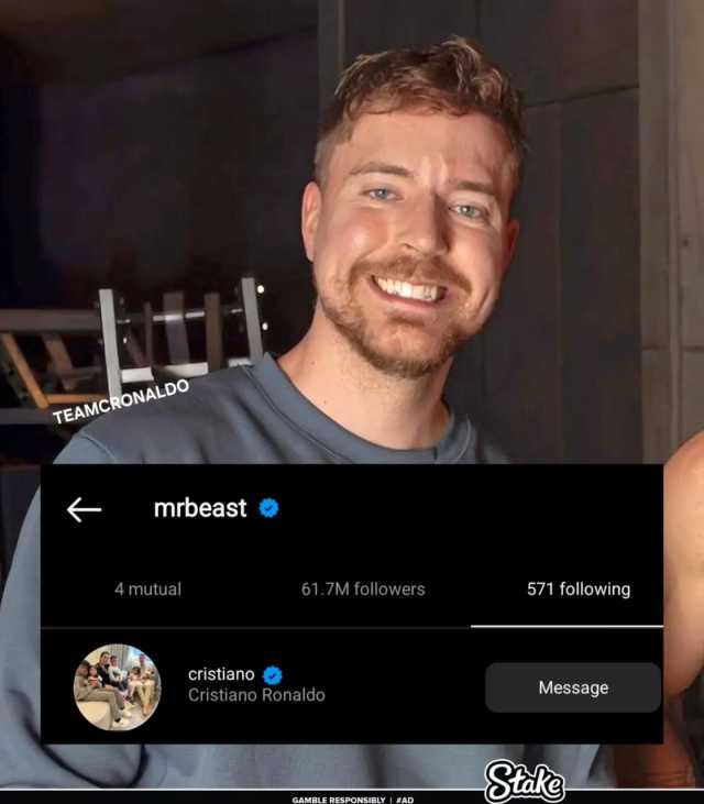 وتوقع البعض أن يكون ضيف رونالدو، هو صاحب الحساب الأشهر الى يوتيوب “مستر بيست”، والذي يتابعه 330 مليون شخص من حول العالم.